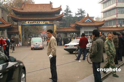 十一月十二日凌晨三時零二分, 河南平煤集團公司十礦發生一起煤與瓦斯突出事故,十二人至今被困井下,下落不明。圖為礦工家屬在十礦大門外焦急等待。中新社發 史寶銀 攝