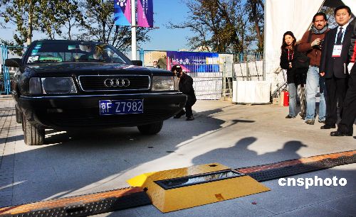 11月16日,北京奧運(yùn)場(chǎng)館安保工作面向境內(nèi)外記者開(kāi)放,一百余位記者在2008奧運(yùn)柔道賽館——北京科技大學(xué)體育館體驗(yàn)了快速車(chē)檢和人身安檢。北京奧運(yùn)安保協(xié)調(diào)小組辦公室常務(wù)副主任、奧運(yùn)安保指揮中心常務(wù)副總指揮劉紹武在現(xiàn)場(chǎng)介紹,一部X光機(jī)和兩部安檢門(mén)為一套系統(tǒng),在一小時(shí)內(nèi)可完成對(duì)八百名觀眾的安全檢驗(yàn),平均不到五秒鐘可放行一人。中新社發(fā) 鄭雄增 攝