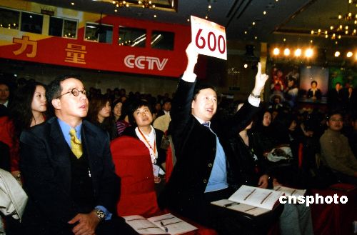 有“中國經濟的晴雨表”、“市場變化風向標”之稱的中央電視臺廣告招標會于11月18日在北京如期舉行,在這個招標會上,中國企業已經提前打響“奧運大戰”,全部北京奧運合作伙伴到場角逐,爭奪企業中意的中央電視臺廣告發布時段。當日,中央電視臺2008年廣告賣出新高,中標總額超過80億元。2008年是中國改革開放三十周年,也是北京奧運之年,在國民經濟保持“又好又快”發展的利好形勢下,國內外企業參與本屆廣告招標的熱情更高,信心更足。中新社發 楊可佳 攝