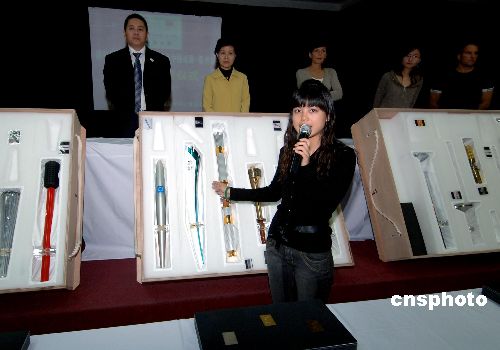 十一月二十一日,國際奧委會奧林匹克珍藏品中國巡展.福州站開箱暨點交儀式在福州國際會展中心舉行。儀式后奧林匹克文化傳播使者湯柳柳向在場的新聞媒體記者介紹歷屆奧運會火炬珍品。國際奧委會奧林匹克珍藏品中國巡展將于十一月二十五日在福州展出,包括歷屆奧運會的獎牌等共731件珍品將亮相。中新社發 劉可耕 攝