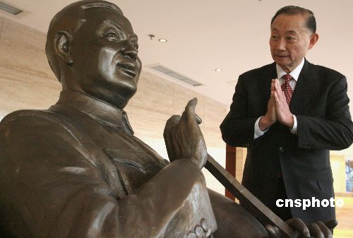 圖:梅蘭芳銅像正式亮相 梅葆玖深情凝視