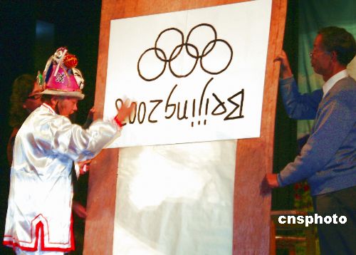 鄭板橋第七代后人倒寫一筆寫字宣傳奧運