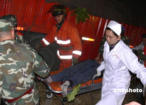 十一月二十九日晚七點四十九分,廣西上林縣境內發生一起車禍,一輛來自四川的大客車與來自重慶的貨車以及一輛拖拉機相撞,造成五死四十六傷。圖為最后一名傷員被救出。中新社發 胡明軍 攝