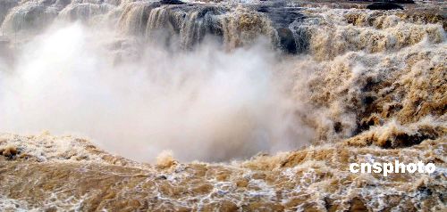 12月5日,黃河壺口瀑布迎來今年入冬后的第二個(gè)冬汛,雖然天氣很冷,還沒有出現(xiàn)冰掛,但水的氣勢(shì)很大,瀑布很壯觀,許多游人都趕來欣賞這壯觀的景象。中新社發(fā) 張旦 攝