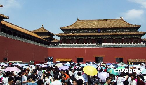 圖為北京故宮門前擁擠的人群。