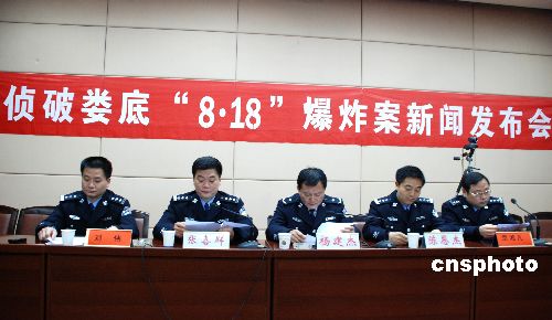 背景資料:2006年8月18日10時20分,婁底市客運管理處稽查二隊辦公室沙發上被人放置一個爆炸裝置,后因警方及時拆除未發生爆炸。當日20時14分,一枚自制定時爆炸裝置在婁底市婁星廣場東側爆炸,一名婦女被炸成重傷。案發后,公安部、湖南省公安廳及婁底市各級黨政領導高度重視。市、區兩級公安機關組織300多名警力全力偵破此案,并成立專案組。同時,婁底警方經認真細致的現場勘察,提取了重要的相關痕跡物證,經過鑒定、檢驗和對比,認定2005年11月8日發生在婁底市物資局的“11.8”爆炸案與2006年“8.18”爆炸案系同一犯罪嫌疑人員所為,決定并案偵察。犯罪嫌疑人陳建下崗后,多年在婁底城區進行摩托車出租,先后多次被婁底市客運管理辦工作人員查扣,陳建對此強烈不滿,加上曾被公安機關打擊處理及本人生活極為困難等原因,從而產生極端仇視客運管理辦工作人員、仇視社會的心理。為達到報復目的,陳建先后兩次制作炸彈裝置,并先后3次于2005年11月8日在婁底市物資局辦公樓(客運管理整頓辦臨時租用)、2006年8月18日在婁底客運管理處、婁星廣場實施爆炸行為。中新社發 白色風 攝