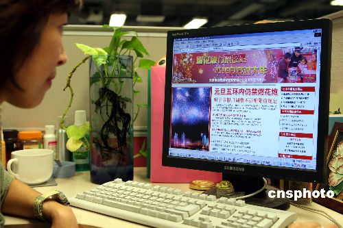 十二月二十一日,北京煙花爆竹安全管理網(wǎng)絡(luò)宣傳平臺正式開通。這是北京首次采用網(wǎng)絡(luò)進(jìn)行相關(guān)煙花爆竹安全管理的宣傳。市民可通過此平臺查詢煙花爆竹銷售許可證辦理、銷售網(wǎng)點(diǎn)分布、煙花爆竹品種和價格等。中新社發(fā) 任海霞 攝