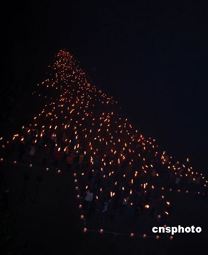 12月24日晚,2000名游客在長沙世界之窗高舉手中的火把,擺出圣誕樹隊形。據悉,如此巨型的“人體”圣誕樹在中國來說尚屬首創。中新社發 肖前輝 攝