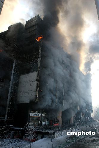 一月三日,新疆烏魯木齊德匯國際廣場批發市場大火仍未撲滅,濃煙彌漫,并釋放出大量有毒氣體,不時有窗戶玻璃掉落,大樓隨時有坍塌危險。當地警方已在整個大樓周邊百米范圍內拉起警戒線,禁止任何人員和車輛進入。消防部門稱,為撲滅這場大火,已有兩名消防人員殉職,一人受傷。截至發稿時,大火已持續燃燒十七個小時。中新社發 劉新 攝