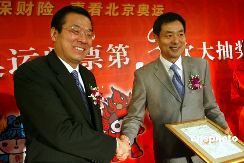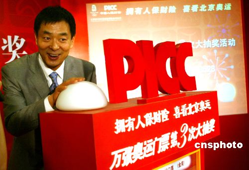 一月四日,著名表演藝術家濮存昕受邀為“擁有人保財險,喜看北京奧運——萬張奧運門票大抽獎”活動進行第三次抽獎。在活動上,濮存昕被北京2008年奧運會保險合作伙伴中國人保財險聘為公司奧運形象大使。他高興地表示,自己已經提出申請成為北京殘奧會志愿者, 希望參與更多的社會公益事業。中新社發 楊可佳 攝