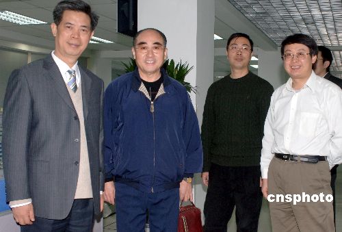 1月7日,乒乓球前世界冠軍莊則棟(左二)做客中國新聞社時(shí),在中新社社長郭招金(左一)等人陪同下參觀中國新聞網(wǎng)。中新社發(fā) 鄒憲 攝