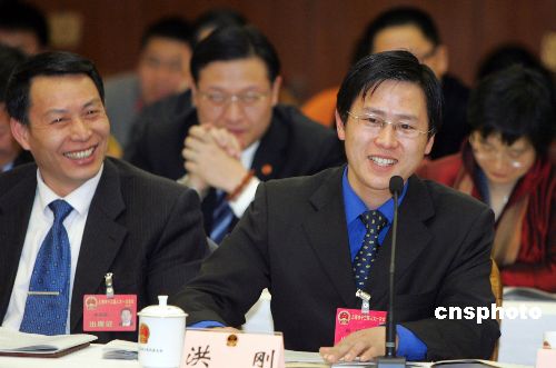 1月24日,作為首次當選上海市人大代表的三位農民工之一——浦東外高橋造船有限公司制造班班長洪剛,在出席浦東新區代表團審議政府工作報告時積極發言,為上海的發展建言獻策。中新社發 湯彥俊 攝