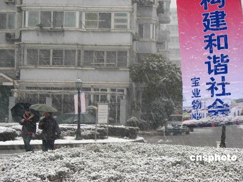 2月1日下午,上海再降大雪。上海中心氣象臺當日下午13時36分發布暴雪黃色預警信號,這是上海首次發布暴雪預警。中新社發 嚴大明 攝