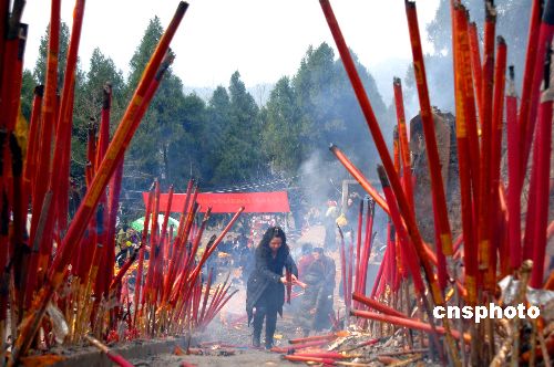 圖:新春佳節(jié)四川民眾爭相登高上香