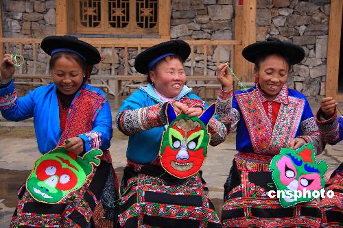 2月8日,大年初二,貴州省興義市間歇泉民族村布依族、苗族風情演出隊在表演自編自導的民族舞蹈。當日,貴州省興義市間歇泉民族村村民自發在村里組織了一臺自編自導的民族風情表演及體育活動,拉開了山寨鬧新春,迎奧運的序幕。中新社發 韋波 攝