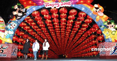 2月8日晚,眾多市民和游人紛紛來到大連勞動公園欣賞奧運主題的彩燈。以“輝煌奧運”為主題的2008迎春游園燈會2月7日至2月24日在大連勞動公園舉行。本屆迎春游園燈會由“喜迎奧運”、“祖國繁榮”、“浪漫大連”、“金鼠送福”、“童話故事”5個系列組織50余盞大型燈組組成。除設燈飾展區(qū)外,還設有民俗表演區(qū)、南北風味小吃區(qū)、游藝游樂區(qū)、民間技藝展示區(qū)和地面焰火表演區(qū)。中新社發(fā) 劉德斌 攝