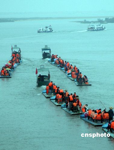 2008年2月9日,大批游客蜂擁登船游覽博鰲。當(dāng)天,海南連續(xù)半個(gè)多月的陰霾寒冷天氣有所改觀,博鰲迎來春節(jié)黃金周旅游高峰。中新社發(fā) 蒙鐘德 攝