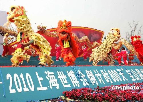 圖:上海舞龍舞獅歡慶世博會(huì)倒計(jì)時(shí)八百天