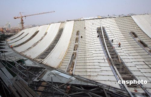 2月21日,由中鐵建工集團(tuán)承建的北京南站核心站房、兩翼雨棚屋面板安裝工程基本完工。北京南站計(jì)劃于4月25日進(jìn)入機(jī)電設(shè)備調(diào)試,6月26日基本完工全面進(jìn)入試運(yùn)行,8月1日開通運(yùn)營(yíng)。中新社發(fā) 張宇 攝