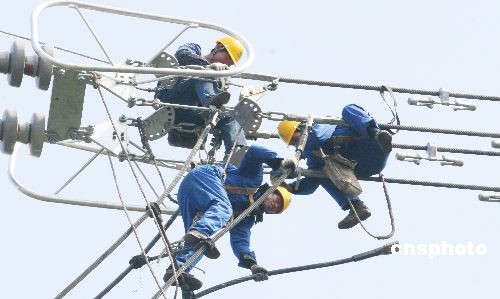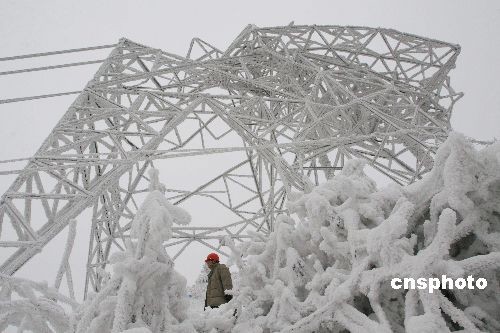 2月23日,全國第一條因暴雪災(zāi)害,導(dǎo)致輸電線路鐵塔倒塌的三峽電力送往華東的大動脈±500千伏湖北宜昌至上海華新直流輸電線路,安徽境內(nèi)搶修工作全部接束,中斷37天的500千伏宜華線恢復(fù)貫通。1月17日,該輸電線路﹟1146-﹟1153段4座位于大別山腹地安徽六安境內(nèi)崇山峻嶺中的巨型鐵塔被冰雪壓塌,線路嚴(yán)重受損。災(zāi)害發(fā)生后,安徽省電力公司500多名搶險人員和當(dāng)?shù)財?shù)百干部群眾克服天寒地凍、山路陡峭等困難,奮力搶修,經(jīng)過37天艱苦奮戰(zhàn),運(yùn)送搶險物資150多噸,終于將4座倒塌鐵塔重新修建完成,宜華線路全線貫通。中新社發(fā) 陳超平 攝