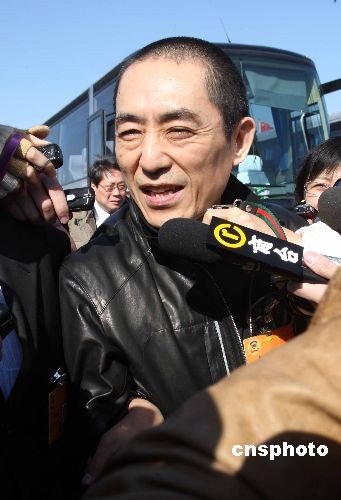 3月3日,全國政協十一屆一次會議在北京人民大會堂開幕,政協委員馮小剛、張藝謀出席開幕會前,在天安門廣場被眾媒體記者追訪。中新社發 張宇 攝