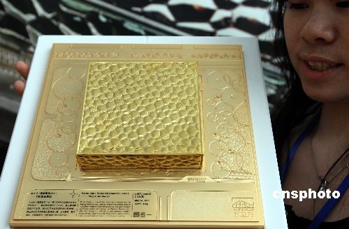 三月五日,金一文化發展有限公司首款純金水立方模型產品在北京國家游泳中心舉行首發式。水立方系列模型產品包括純金、純銀和水晶、琉璃等四種材質。每款都是全球限量發行,具有較高的紀念價值、鑒賞價值及收藏投資價值。中新社發 任海霞 攝