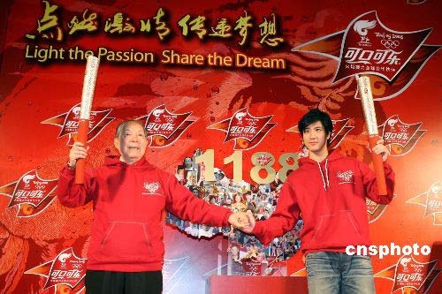 3月21日,可口可樂中國公司宣布,面向中國全國公開選拔推薦的1188名[可口可樂]火炬手護(hù)跑手順利通過北京奧組委資格確認(rèn),正式成為北京奧運(yùn)會火炬手及護(hù)跑手,即將踏上傳遞夢想之旅。其中,中國工程院院士、奧運(yùn)第一人劉長春之子劉鴻亮(左)和著名音樂人王力宏將作為首批傳遞北京奧運(yùn)圣火的華人,啟程奔赴希臘奧林匹亞,在圣火燃起的3月24日當(dāng)天,讓中國人的風(fēng)采照亮古老的奧林匹克運(yùn)動(dòng)發(fā)祥地。中新社發(fā) 夏爾巴 攝