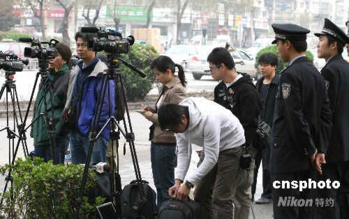 4月11日,天津市第二中級(jí)人民法院開庭對(duì)原中共上海市委書記陳良宇做一審判決。清晨開始,就有包括香港媒體在內(nèi)的多家媒體記者聚集在天津二中院附近進(jìn)行跟蹤報(bào)道。中新社發(fā) 齊天 攝