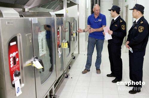 近日,北京海關在媒體村對一批奧運物資進行現場驗放。該批物資為奧運會所需的廚房設備,共計3個集裝箱。北京海關組織24小時的現場支持,到運動員村,媒體村,國際廣播中心和新聞媒體中心等各個現場對貨物進行查驗。中新社發(fā) 雷虹 攝