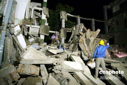 5月13日凌晨,距離四川汶川地震震中直線距離約30公里的四川綿竹市漢旺鎮東方汽輪機有限公司在地震中受損嚴重,死亡人數已超過60人,目前仍有500余人生死不明。東方汽輪機廠廠區內裂縫嚴重。中新社發 郭晉嘉 攝