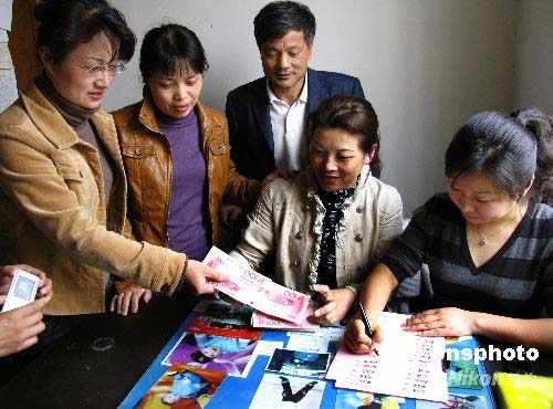 2008年5月14日上午,江蘇省大豐市電影站10多名員工主動向向四川地震災(zāi)區(qū)捐款3000多元,其中卞衛(wèi)民、劉海燕夫妻倆捐款1000元。當(dāng)天下午,該市召開動員大會,發(fā)動群眾向四川地震災(zāi)區(qū)捐款獻(xiàn)愛心。昨天,該市紅十字會和慈善總會就收到市民捐款2萬多元,支援四川地震災(zāi)區(qū)。中新社發(fā) 周古凱 攝