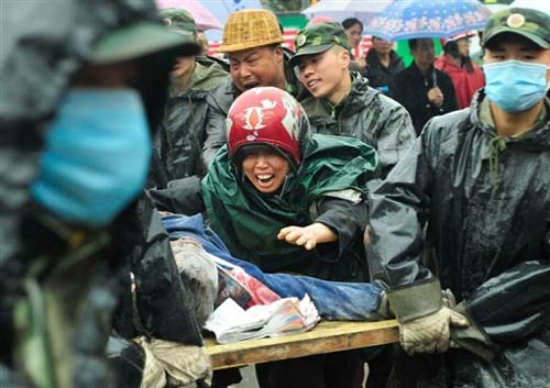 圖:失去了親人的都江堰災區災民嚎啕大哭