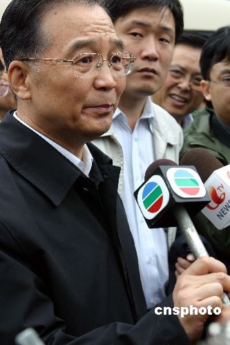 正在北川指揮現場抗震救險的中國總理溫家寶接受香港電視媒體記者簡短采訪時表示,香港同胞無論采取何種方式對于我們災區進行支援、幫助,我們都感謝。溫家寶說,感謝香港同胞對四川這場災難的關注和給予的支援,請香港同胞堅信,在中國政府的領導下,我們一定能夠戰勝這場自然災難。面對香港記者關于“香港市民怎么幫助你們”的提問,溫家寶說,這次災難是歷史上罕見的,山可以移動,但動搖不了我們抗震救災的決心,水可以隔斷,但隔斷不了香港同胞和內地同胞的友情,香港同胞無論采取何種方式對于我們災區進行支援、幫助,我們都感謝。中新社發 孫宇挺 攝