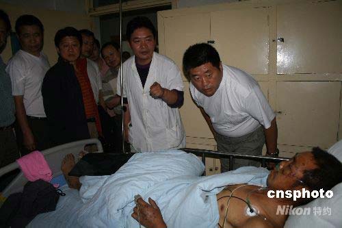 5月14日晚,由貴州省衛(wèi)生廳廳長(zhǎng)何崇遠(yuǎn)帶領(lǐng)的首批貴州援川醫(yī)療隊(duì)近百人抵達(dá)四川眉山市,增援當(dāng)?shù)蒯t(yī)院救治地震災(zāi)區(qū)的傷員。眉山市各主要醫(yī)療單位在做好本地傷員救治工作的同時(shí),大量收治來(lái)自四川綿竹等災(zāi)區(qū)的重傷員。貴州援川醫(yī)療隊(duì)抵達(dá)眉山市的當(dāng)晚,立即趕到病房和當(dāng)?shù)蒯t(yī)務(wù)人員一起會(huì)診重癥傷員,討論治療方案。中新社發(fā) 堯遙 攝