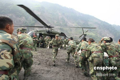 四川地震:直升機(jī)運送重傷員