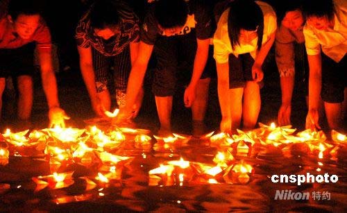 5月16日晚,安徽省蕪湖市辣子村36位四川籍員工將親手折疊的祈福船放入長(zhǎng)江漂流,借燭光寄托思念,以漂船渡平安的表達(dá)方式,祈求家鄉(xiāng)受災(zāi)的親友戰(zhàn)勝災(zāi)魔。中新社發(fā) 陳立希 攝