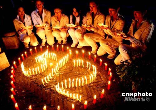 5月17日晚,來自日本、韓國、馬來西亞、泰國、菲律賓以及中國的40名參加2008亞洲超級模特大賽的選手,在廣西興安古老的靈渠放“河船”為中國“5·12”大地震受災人民祈福。中新社發 錢興強 攝