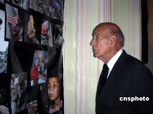 五月二十日上午,法國前總統(tǒng)德斯坦來到中國駐法國大使館,向四川大地震遇難者表示哀悼。他用中文在吊唁簿上一筆一劃地寫下了“深切哀悼四川死難者”。中新社發(fā) 吳衛(wèi)中 攝