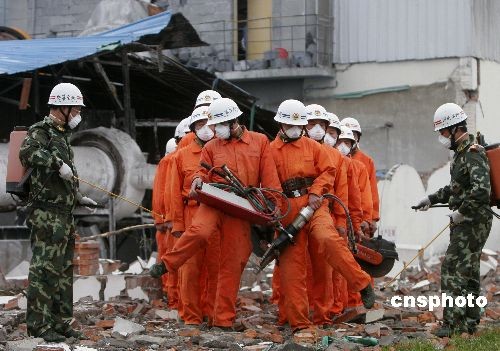 5月21日,救援部隊在四川省什邡市鎣華鎮、洛水鎮進行消毒防疫。中新社發 張曉理 攝