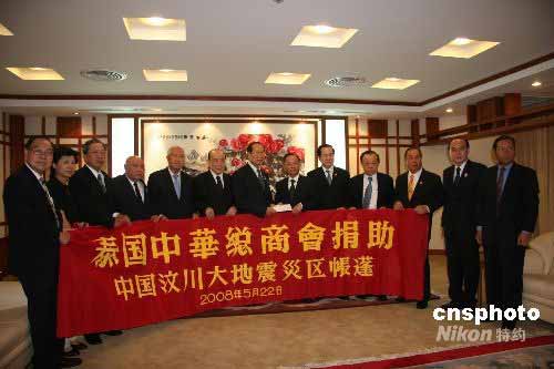 中國(guó)汶川大地震的災(zāi)情一直令泰國(guó)華人華僑關(guān)心,災(zāi)情發(fā)生以來(lái),僑界捐款源源不斷。泰國(guó)中華總商會(huì)5月22日向地震災(zāi)區(qū)捐助兩千多套帳篷,成為泰國(guó)社會(huì)捐助地震災(zāi)區(qū)的第一批物資。這些帳篷將在近日通過(guò)中國(guó)駐泰大使館轉(zhuǎn)運(yùn)災(zāi)區(qū)。中新社發(fā) 顧時(shí)宏 攝