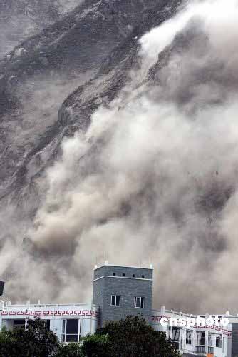 5月25日,四川汶川又發生余震,山體出現滑坡。中新社發 張雷 攝