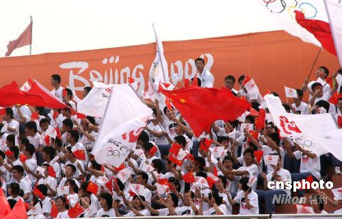 圖:江蘇泰州民眾為奧運圣火傳遞歡呼