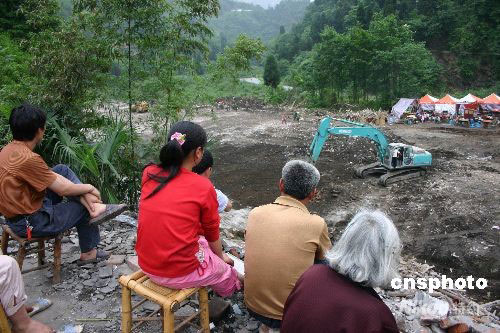 5月28日,在四川汶川大地震重災區之一的彭州,深處山中的白鹿鎮災區仍有許多民眾只能住在自搭的簡陋篷子里,他們希望早日住進活動板房。目前,解放軍部隊官兵正在抓緊為他們修建板房。中新社發 楊杰 攝