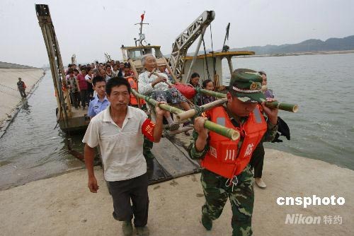 5月30日,四川省遂寧市武警支隊戰(zhàn)士幫助轉(zhuǎn)移船山區(qū)小河洲群眾。當天下午,船山區(qū)政府緊張有序組織小河洲村民緊急撤離預(yù)演。由于涪江支流湔江上游唐家山堰塞湖面臨潰堤危險,處于涪江中游的該市各級各部門及時啟動應(yīng)急預(yù)案,并開展有序的撤離預(yù)演,確保唐家山堰塞湖潰堤遂寧市零傷亡。中新社發(fā) 鐘 敏 攝