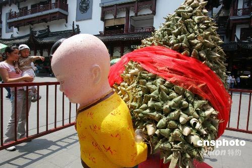 6月5日,一個(gè)由2008個(gè)小“粽子”組成的大“粽子”亮相上海街頭,吸引了不少路人的目光。隨著端午節(jié)的臨近,端午氣息在申城街頭日益濃郁。中新社發(fā) 湯彥俊 攝