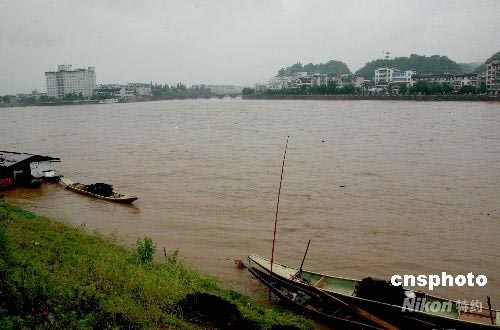 2008年6月10日,安徽黃山市各地再降大到暴雨,屯溪新安江水位繼續猛漲,沿江兩岸游(漁)船全部靠岸安然無恙。。中新社發 方也廣德 攝