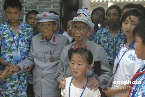 圖:98歲紅色娘子軍看望四川災區孩子