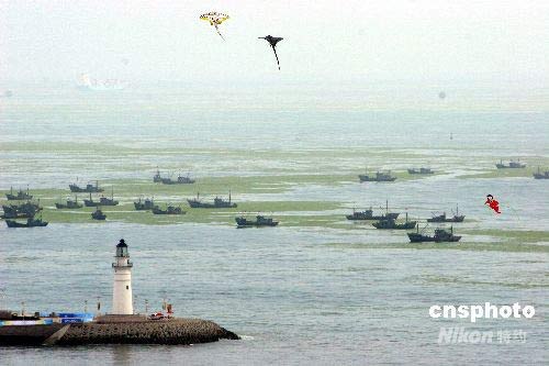 近期,青島近海出現漂浮海藻。經專家初步鑒定該漂浮海藻為滸苔,與2007年青島沿岸出現的漂浮海藻情況基本一致。滸苔屬全球分布的種類,既可分布在海水中,也可以在淡水中生長,甚至有可能附著在船舶上,生長期一般在15天左右,當藻體變黃發黑時即死亡。滸苔可作飼料,也可供藥用。預計隨氣候等環境改變,青島海域滸苔將消失。目前,青島市海洋與漁業局已根據其發展情況采取了相應措施,確保不會影響到奧帆賽正常舉行。中新社發 呼蘭江 攝