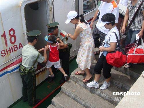 浙江省氣象臺(tái)7月17日上午發(fā)布臺(tái)風(fēng)警報(bào),第7號(hào)熱帶風(fēng)暴“海鷗”8時(shí)已加強(qiáng)為臺(tái)風(fēng),位于溫州東南偏南650公里處,未來強(qiáng)度將逐漸增強(qiáng),將對(duì)浙江沿海地區(qū)造成較為嚴(yán)重的影響。面對(duì)來勢(shì)洶洶的臺(tái)風(fēng)“海鷗”,溫州市邊防支隊(duì)南麂邊防派出所立即啟動(dòng)防臺(tái)工作預(yù)案,會(huì)同當(dāng)?shù)劓?zhèn)政府迅速做好南麂島游客的疏散撤離工作。截止7月17日13時(shí),南麂島上的600余名游客已經(jīng)安全撤離。中新社發(fā) 吳水斌 攝