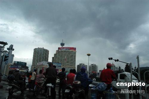 2008年7月18日,受今年第7號臺風“海鷗”影響福州上空烏云密布,天空中下著雨。據福建省氣象臺報告,今年第7號臺風“海鷗”,將對福建省中北部沿海造成較大影響,并可能于當日下午到夜間在福州連江與浙江溫嶺之間沿海登陸。中新社發 張 斌 攝
